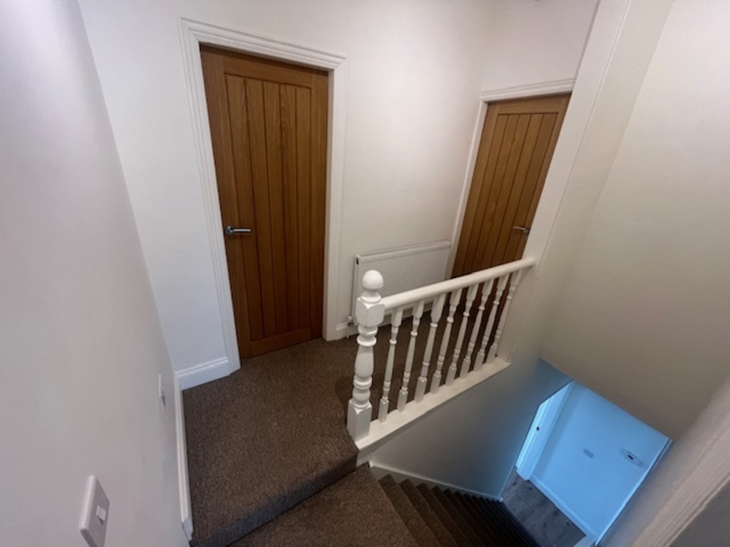 BEDROOM 1 13' 02" x 11' 09" (4.01m x 3.58m) front facing window with over stair storage cupboard/wardrobe and central heating radiator.