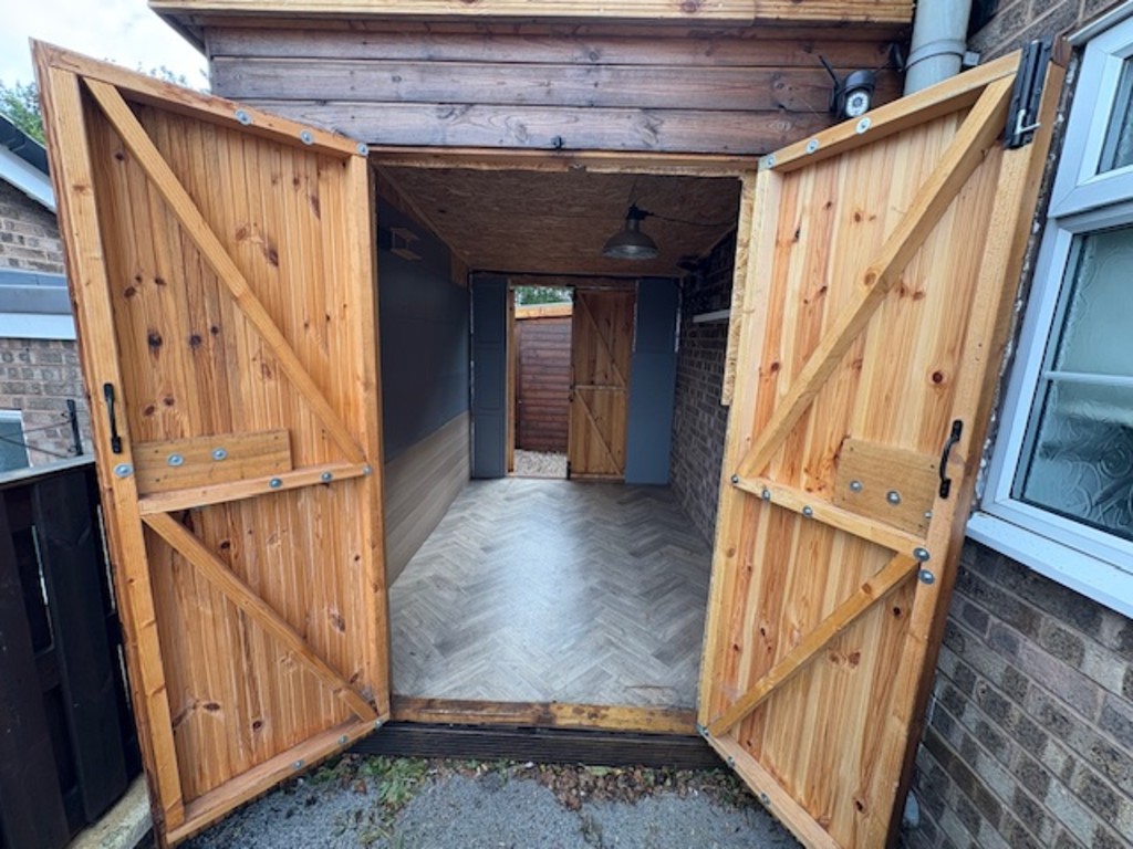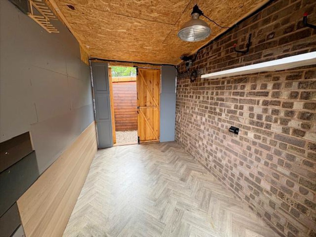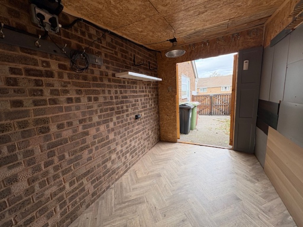 OUTSIDE To the front of the property is a sloping driveway with split level garden with pebbles and shrubbery, side access gate to attached storage shed with rear access to fully enclosed garden and patio area with further storage shed and dog kennel, all being fully insulated with power and light.