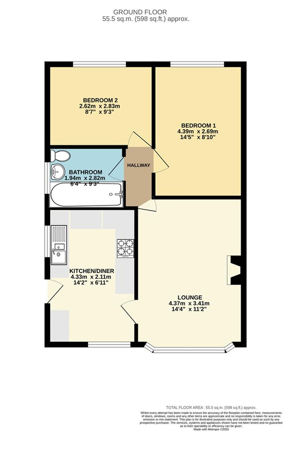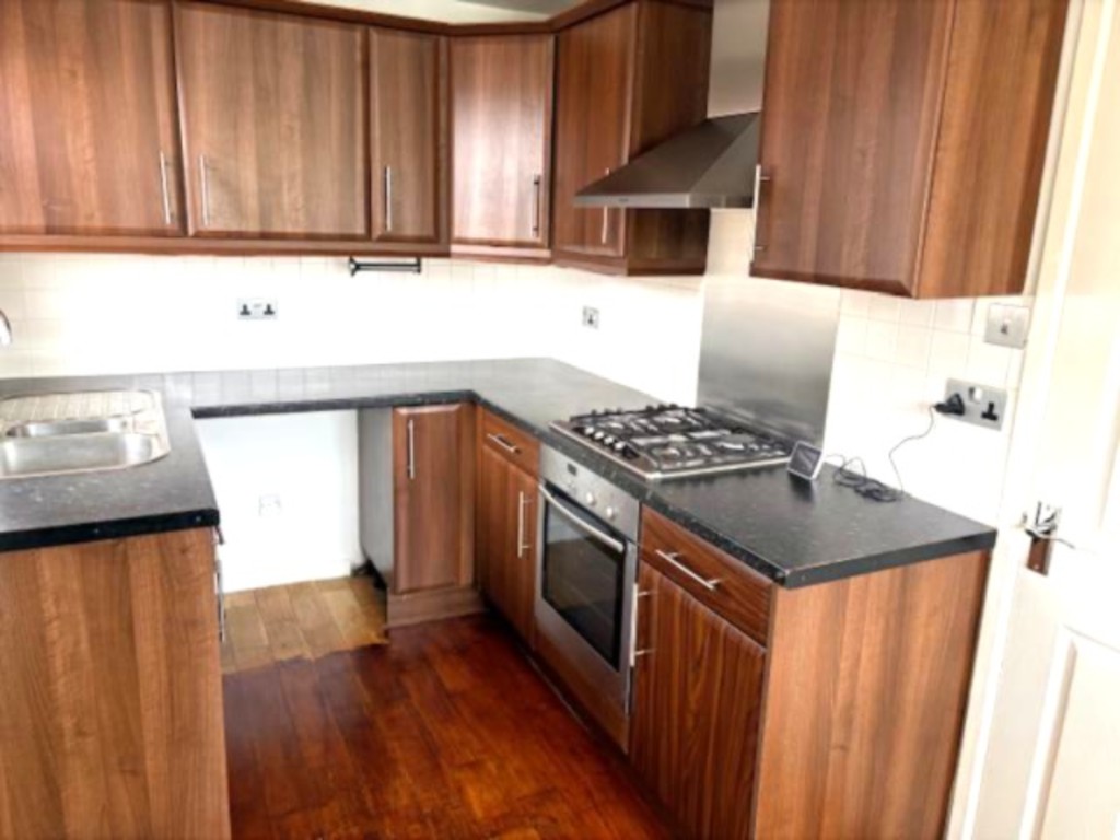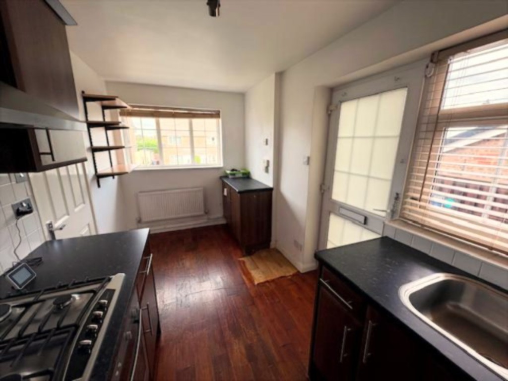 KITCHEN 13' 10" x 6' 06" (4.22m x 1.98m) Front And Side Facing window with range of wall and bass units. Incorporating gas hob and fan. Tiled splash back with stainless steel 1/4 sink. plumbing for washing machine and space for fridge freezer.