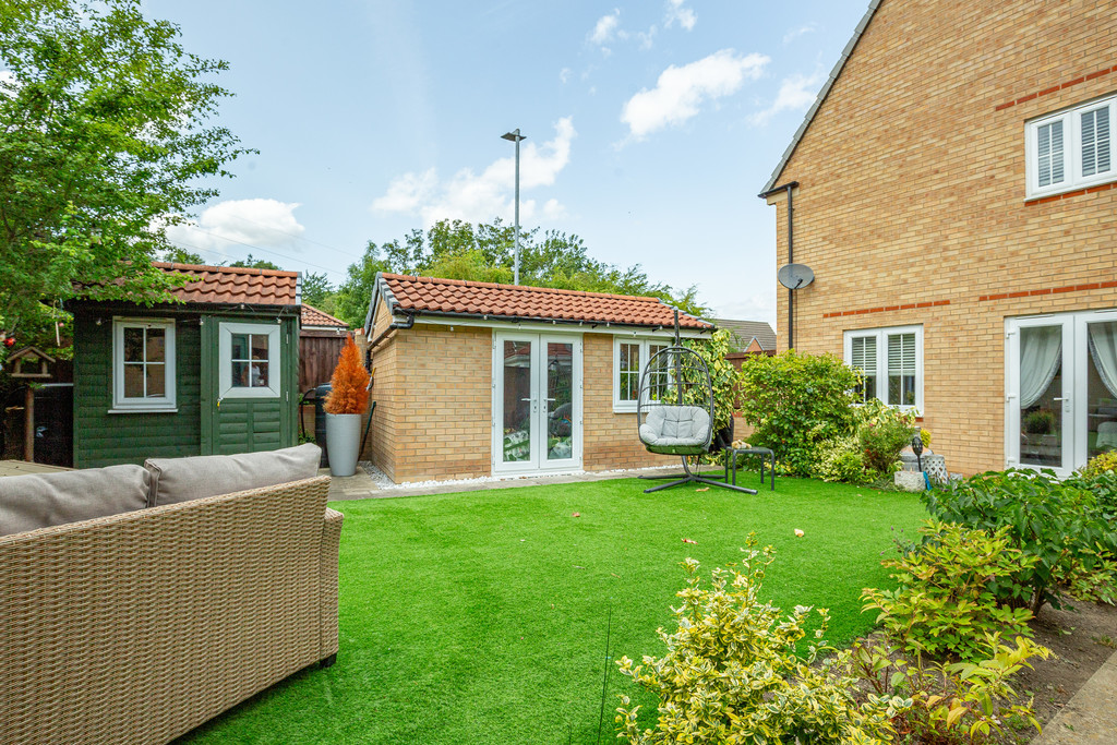 OUTSIDE To the outside of the property is a neat frontage with detached garage with power and light and up and over door, driveway, side access gate leading to a fully enclosed garden laid to astro turf with patio, storage shed and summer house with power and light.
