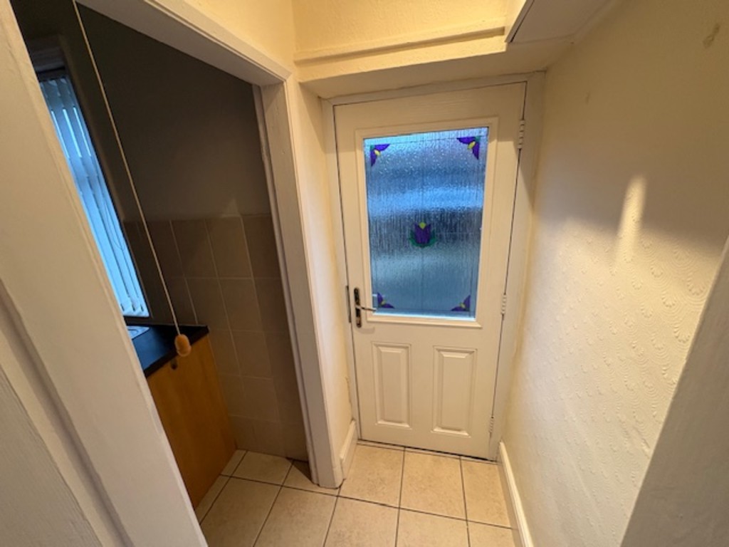 REAR LOBBY Rear facing entrance door, tiled flooring.