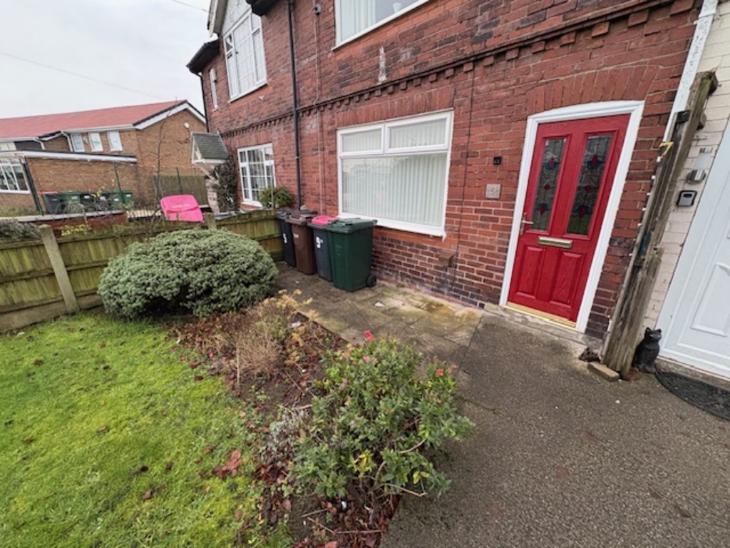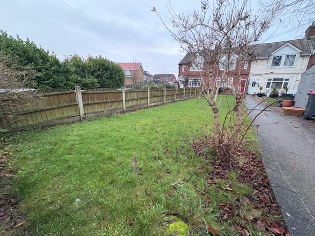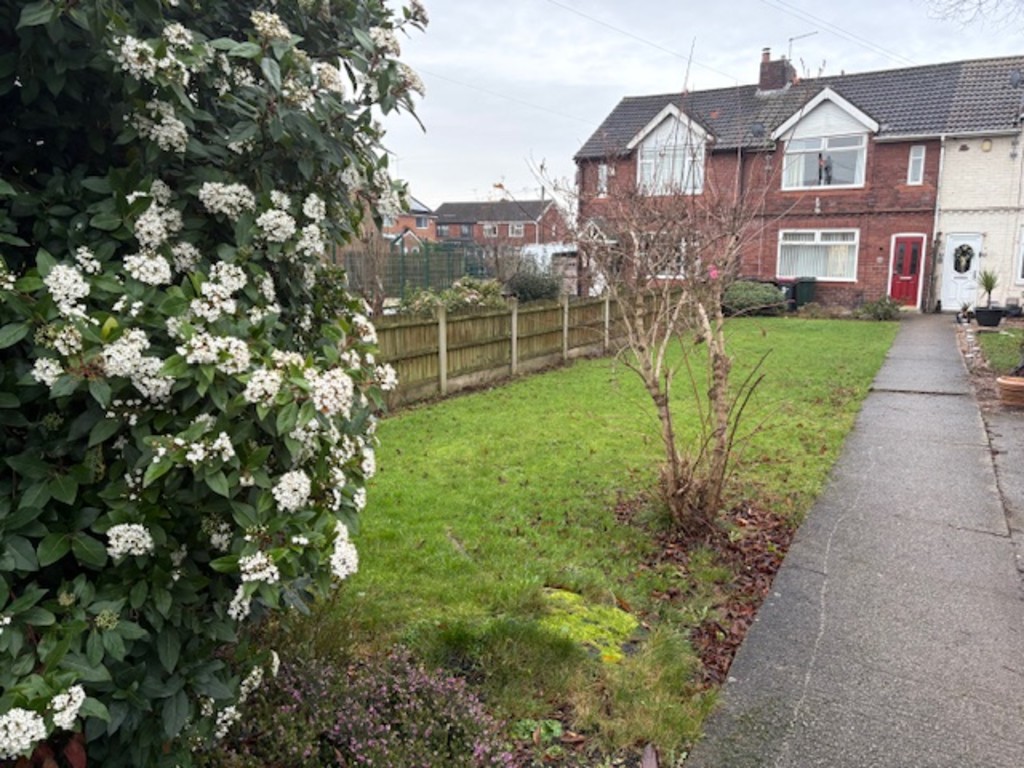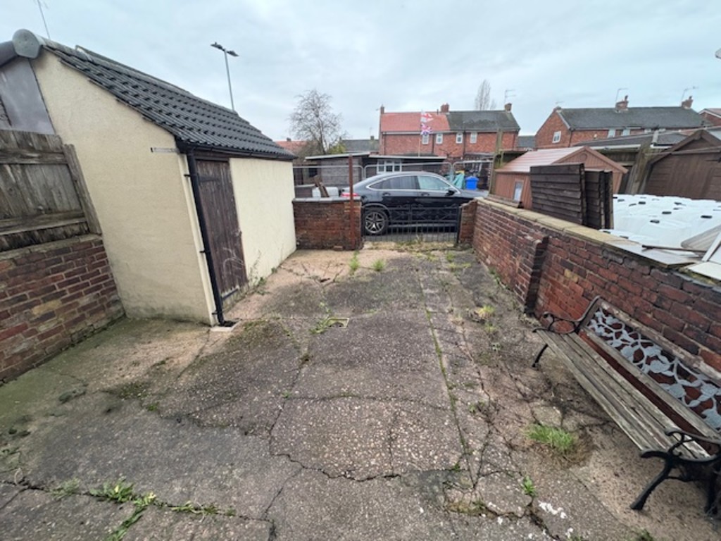 OUTSIDE To the front of the property is a large garden laid to Lawn with shrubbery and patio area, to the rear is a fully enclosed yard with double rear gated access for parking, brick rendered outbuilding with access door for storage.